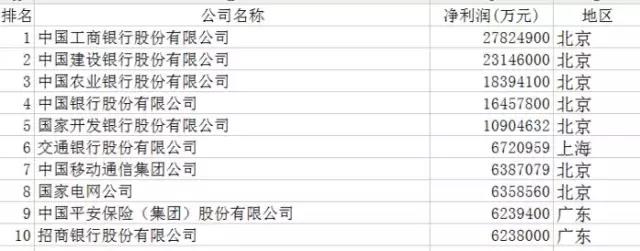 Bank, bank or bank?! Engineering, construction, agriculture, the big five banks, coupled with the National Development Bank, the total profit of 6 banks more than 1 trillion yuan, accounting for 500 total profit of more than 36.6%; and 500 of the top 245 manufacturing enterprises, total net profit of 549 billion 310 million yuan, accounting for 500 of the total net profit of 19.53%. The total profits of the 245 companies are only half the profits of the 6 banks.