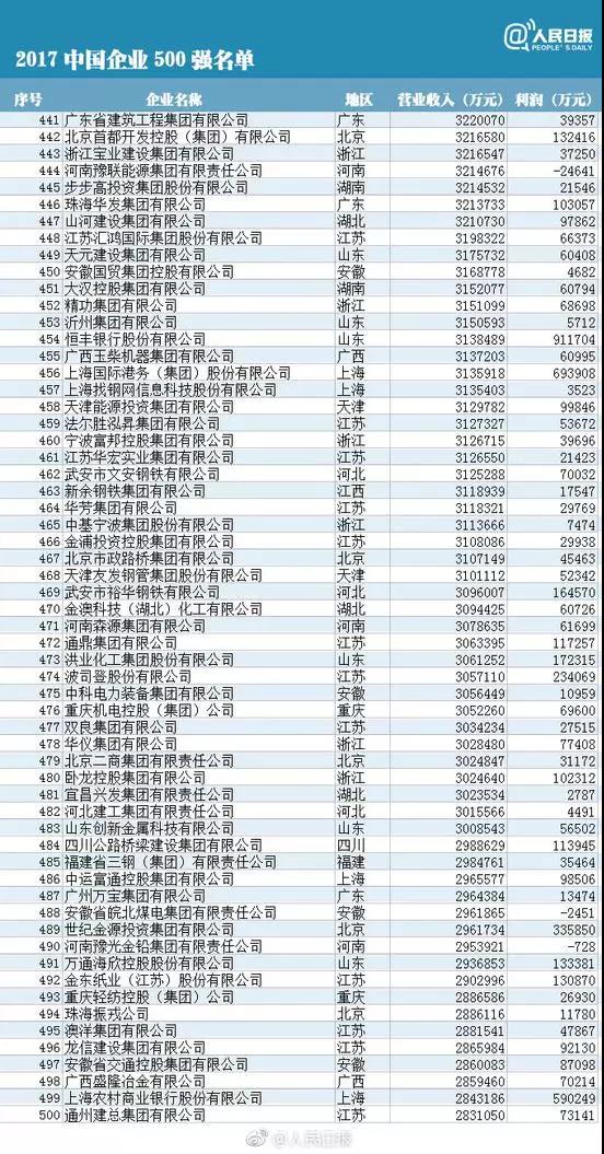 The list of the 500 top 2017 Chinese enterprises released in September 10th is the list of China's top 500 enterprises in China for sixteenth consecutive years in accordance with international practice and the China Enterprise Association and China Entrepreneurs association. As an important monitoring index for the operation of Chinese enterprises, the list of China's top 500 enterprises each year outlines the development path of key industries and large enterprises.