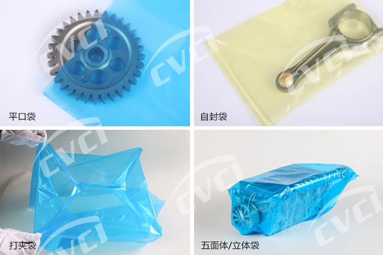 氣相防銹塑料薄膜以聚烯烴類樹脂為基材,加入揮發(fā)性緩蝕劑(VCI),經(jīng)過(guò)一些列工藝制成。氣相防銹膜在實(shí)際應(yīng)用中主要以袋狀或片狀形式呈現(xiàn)(詳見(jiàn)產(chǎn)品狀態(tài)),包裝保護(hù)客戶的產(chǎn)品,集防銹與包裝功能為一體。我們膜的厚度、顏色、尺寸及形式根據(jù)客戶實(shí)際需求進(jìn)行定制化、個(gè)性化生產(chǎn)。抗靜電氣相防銹膜具有良好抗靜電性,表面電阻率(108~1012)Ω。