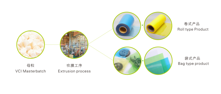 適用于以擠出吹塑方式生產(chǎn)的工業(yè)包裝用氣相防銹膜。